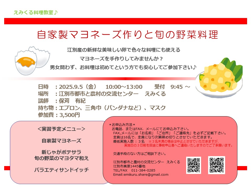場 所:江別市都市と農村の交流センター「えみくる」