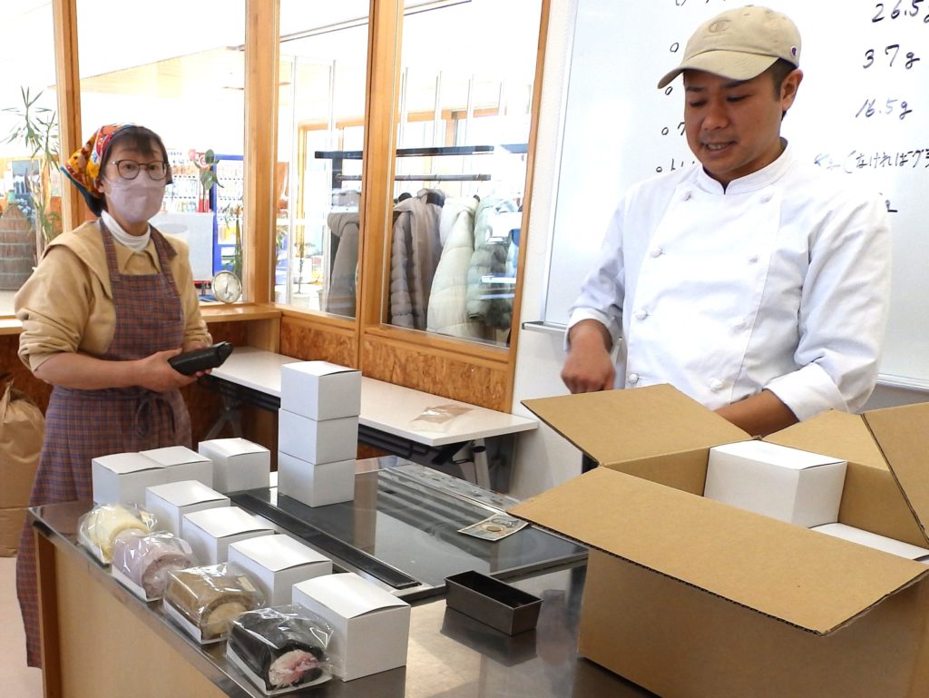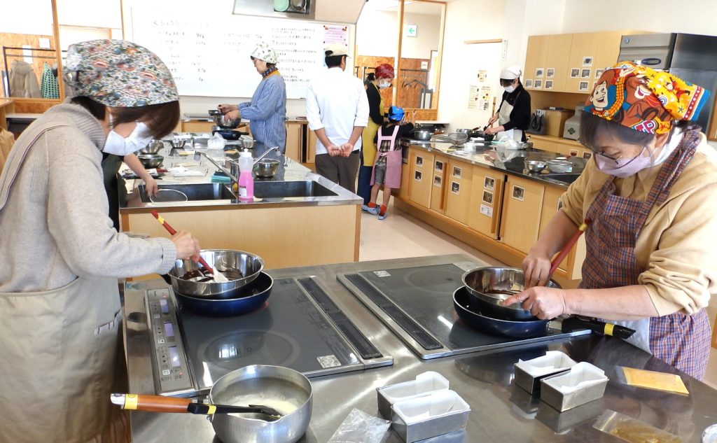 ロールケーキ作りは毎回人気ですが、年明けすぐの講習会でしたが沢山の方が参加してくれました最後の仕上げの巻くのが、過去の講習会でも難しいと苦労していましたが、今回は生クリームの泡立て方が難しかったという人が多かったです。泡立てすぎても柔らかくなってしまうので、泡立てのタイミングが難しいようです。