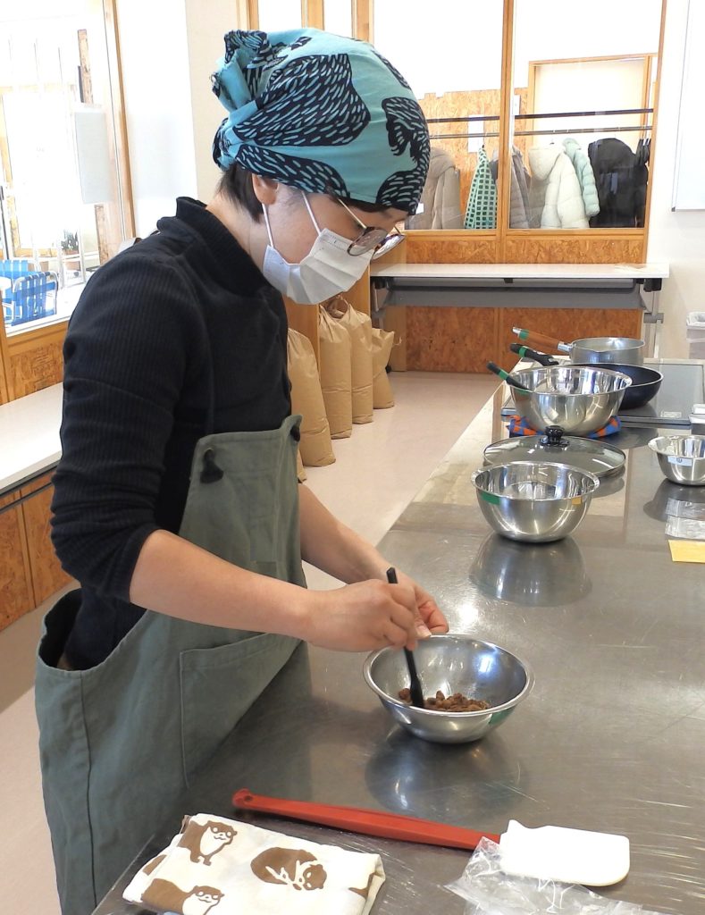 経験者が多いため簡単な説明をするだけで、参加者同士で教えあいながら順番に大豆をチョッパーにかけ容器に詰めていく様子を見ていると、もはや講師は必要ないように思えます。