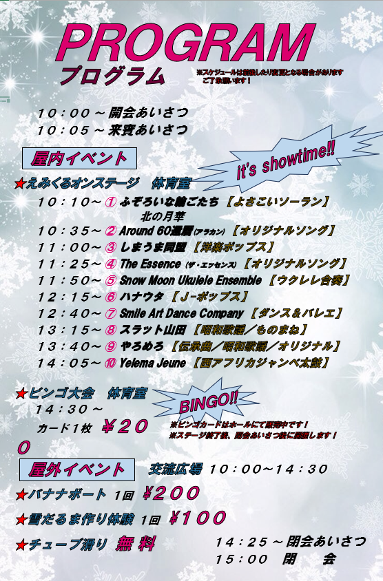 ★バナナボート ★チューブ滑り ★雪だるま作り体験
