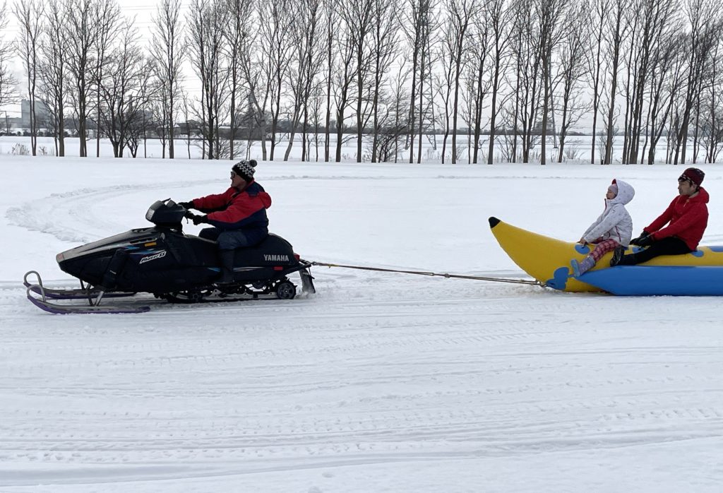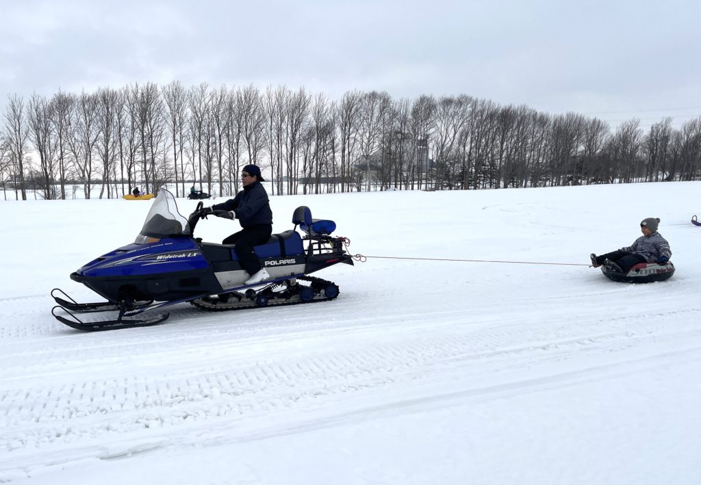 屋外(交流広場~野球場)ではスノーモービルで走るバナナボートやチューブ滑り、雪だるま作り体験などちびっ子達に大人気でした♪